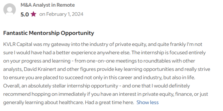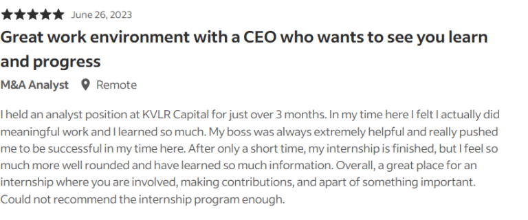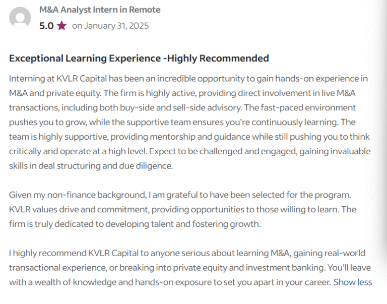 Our alumni have successfully transitioned into prominent roles within the finance industry, including positions at leading private equity firms and investment banks. Their success is a testament to the quality of training and support provided by KVLR Capital Academy.